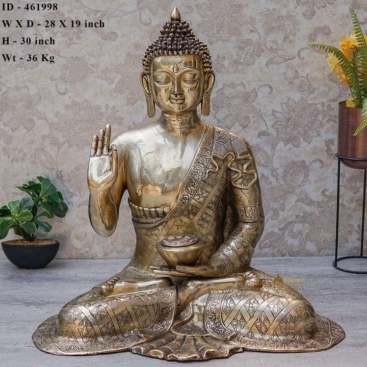 Brass Big Buddha Statue Home Office Garden Décor Corporate Gift Showpiece Idol 30 Inc
