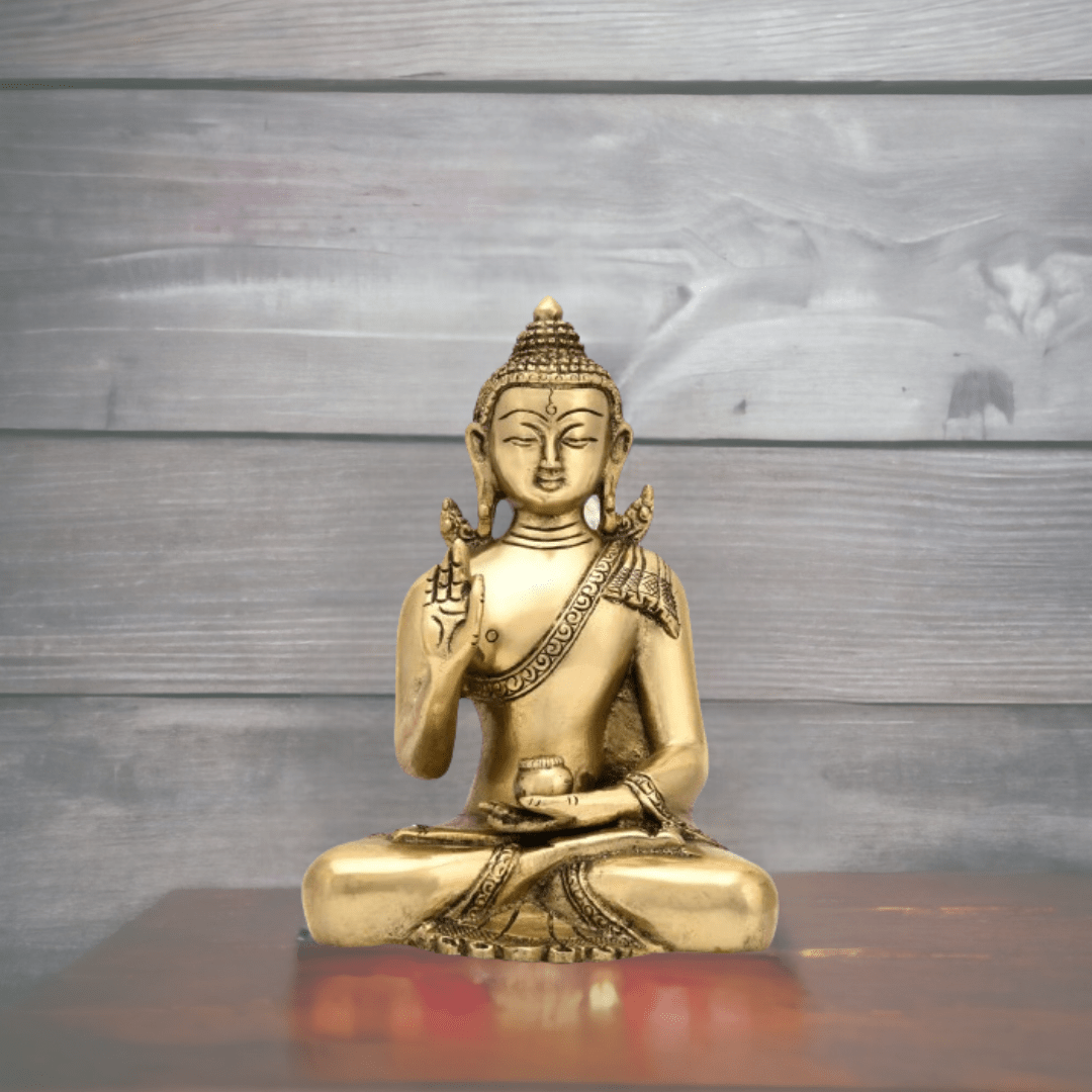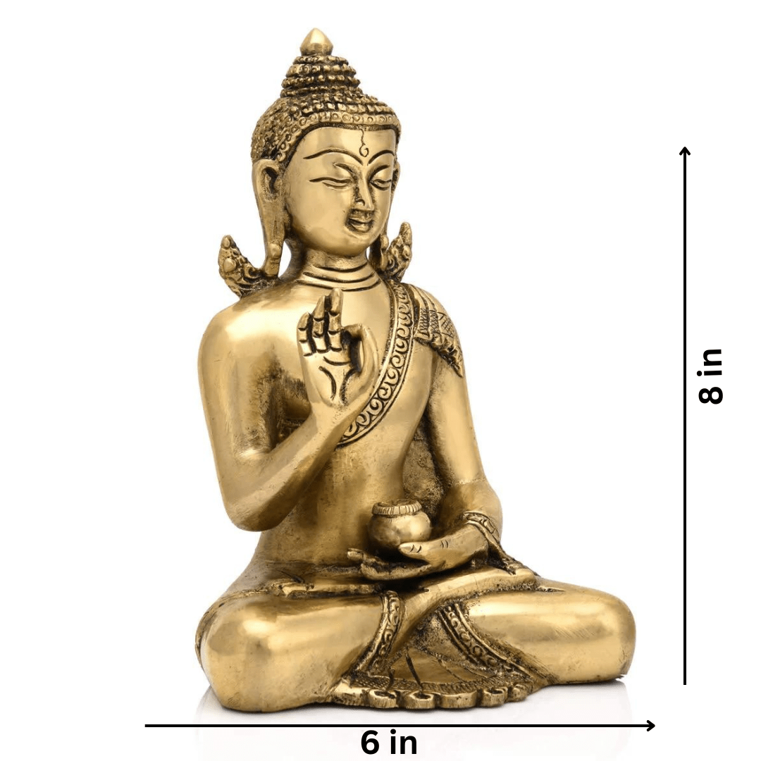 A brass blessing Gautam Buddha idol showpiece is a beautiful and meaningful item often used in home décor or as a personal spiritual reminder. Here’s a brief overview of what you might expect from such a showpiece: