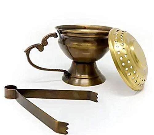Brass Dhuna with Tong Antique Finish Dhoop Dani Loban Burner