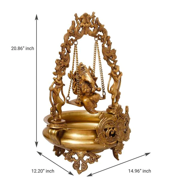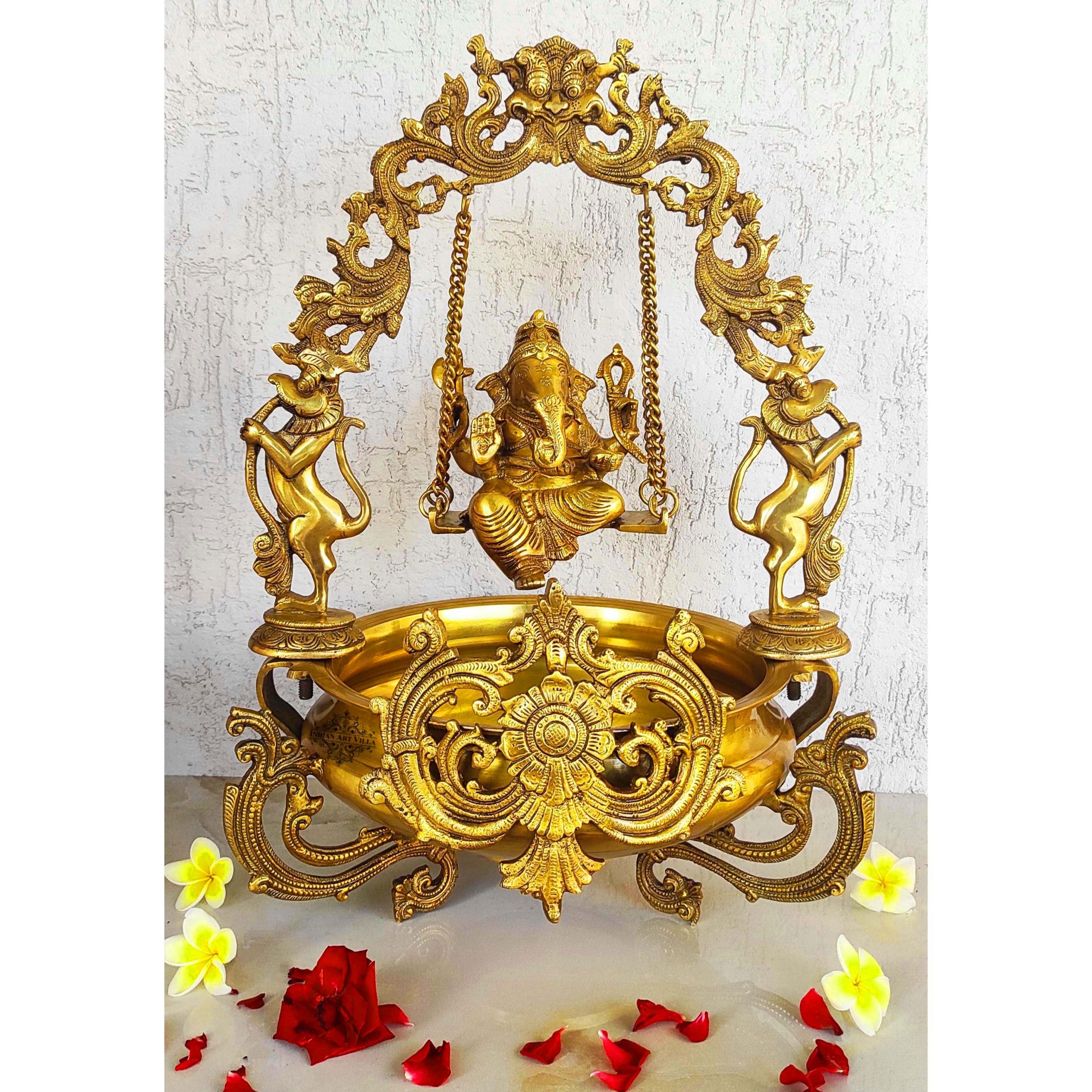 Golden Brass Decorative Lord Ganesha on Swing Urli