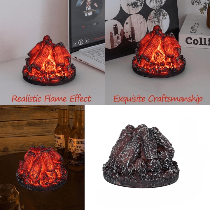 Decorative Electric Fake Campfire: Our premium resin firewood lamp simulates flickering flames like a real bonfire, casting warm, cozy light. Create a mystical atmosphere at home with this decorative electric fake campfire