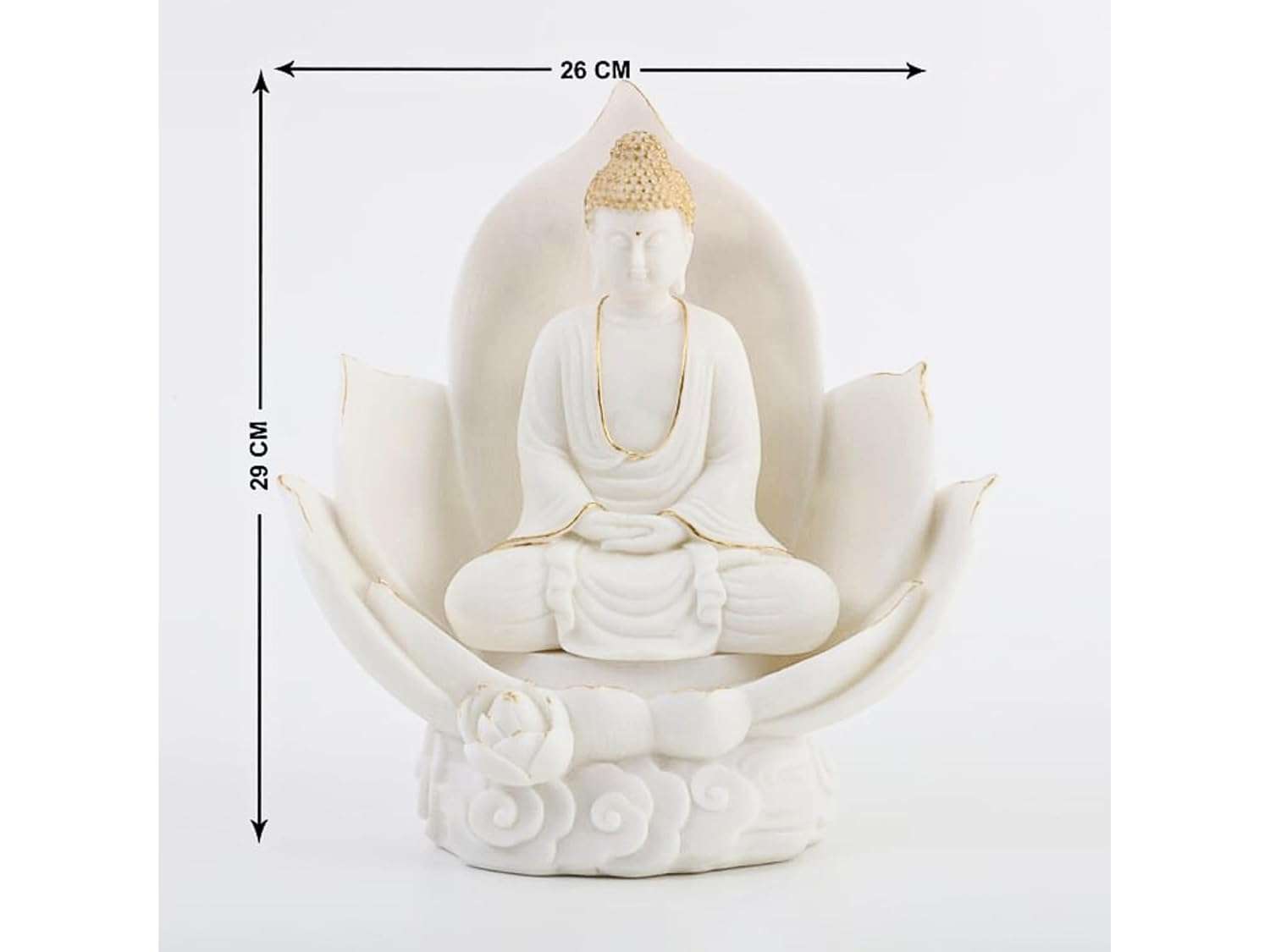 This is the one of the most popular Buddha hand gestures called Relax Mudra, the energy of No Fear.This hand gesture is always depicted with the right hand, while the left hand is on the lap, with the palm facing outwards (Varada Mudra)