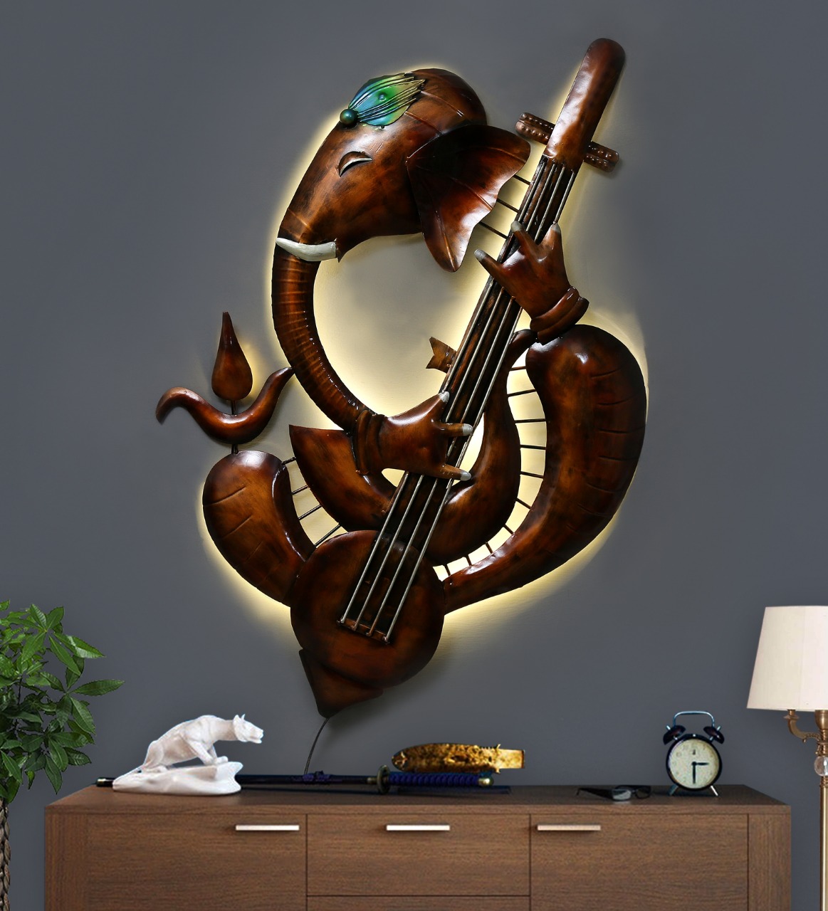 Ganesh Metal Wall Art gives positivity. Flickkerbox has taken care of the needs of religious customers too. You can get their Ganesh idol metal wall hanging to bring positive vibes. This wall hanging is perfect for festival celebrations and gifting to friends and family. The piece is painted golden, making it more beautiful. The idol is well made with quality metal and colors. All the wall hangings by Flickkerbox come with an in-built hanging mechanism which makes it easy to place on the wall. They have a timely delivery service and each product is packed full to save it from any damage.