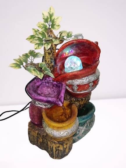 This Water Fountain is Made of Fine Grade Polyfiber with LED Lights and a high quality water pump. Fountain has Separable Water Tank so It is easily cleanable.This Decorative Water Fountain can be placed as Interior Decoration Accessories / Table Decor Items. A POSITIVE IMPACT : As per VASTU /Feng shui Water Fountain Showpieces Placed in North East Direction of Drawing / Living Room Creates a Positive Aura & brings Peace & Happiness Among The Home Members Like Mother , Father , Husband , Wife , Brother , Daughter & Friend