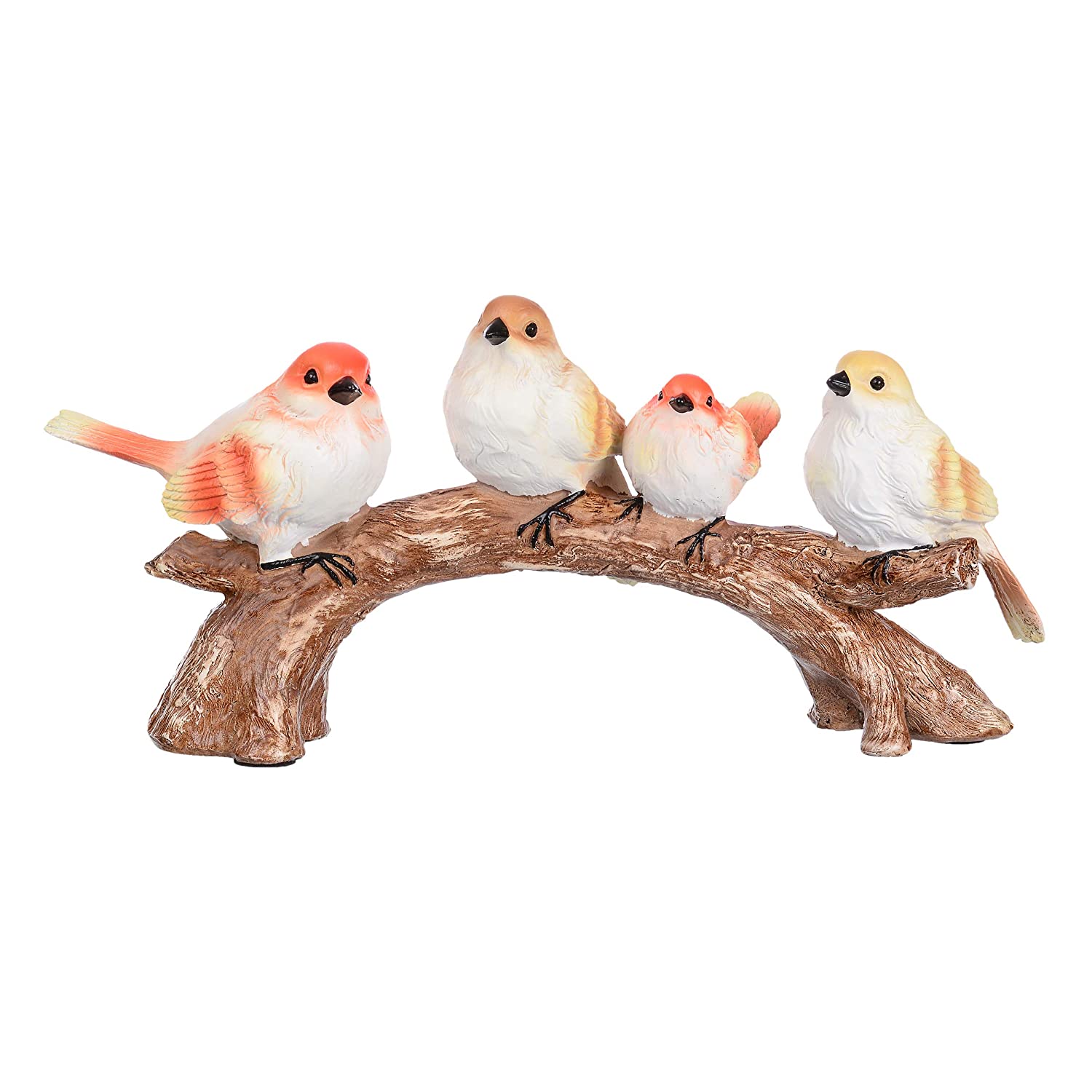 Polyresin 4 Birds Sitting On Tree Branch Figurine/Showpiece for Home Office Decor