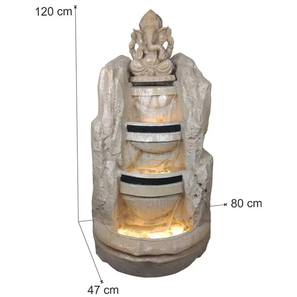 Stone Look Fiber Ganesha Fountain for Home Decor