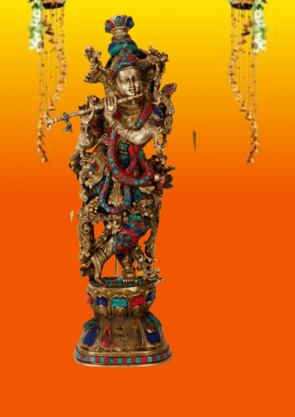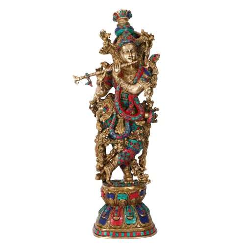A Brass Krishna Statue Playing with Flute is a popular religious and decorative item that depicts Lord Krishna, an important deity in Hinduism, in the form of a brass sculpture. Krishna is considered the eighth avatar of Lord Vishnu and is revered as the embodiment of divine love, joy, and divine playfulness.The craftsmanship of a Brass Krishna Statue Playing with Flute can vary, with some sculptures exhibiting highly detailed facial features, clothing, and accessories, while others may have a simpler design.