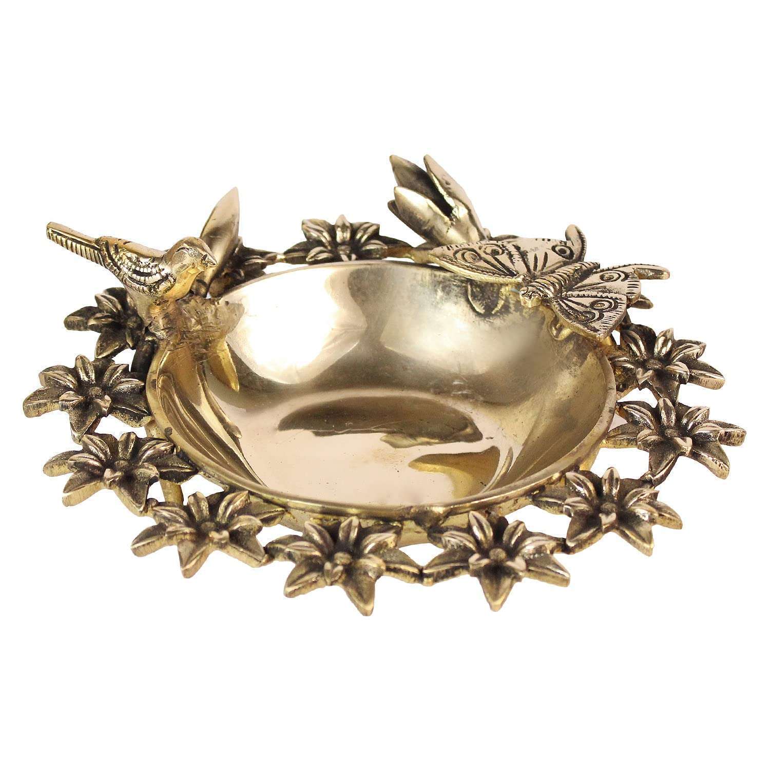 Traditional Bird Butterfly Flowers Urli Bowl Showpiece for Floating Candles Home and Office Decoration